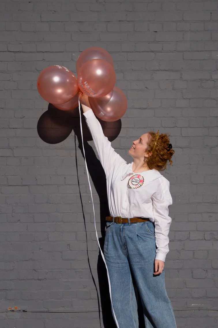 Rose Gold Happy Birthday Balloons by Talking Tables. Pack of 5 latex balloons with printed 'Happy Birthday' design. These pretty rose gold balloons can be filled with air or helium. The perfect birthday party decoration and suitable for kids and adults! Also includes paper ribbon that can be attached to each balloon. Pair with our 'Party Porcelain Rose Gold' or 'Rose' range for matching party decorations, tableware and supplies. Size: 30cm (12in), 3m paper ribbon.