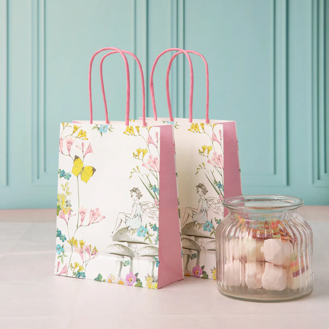 Give your guests this sweet little treat bag filled with birthday goodies to say thank you for coming to your fairy birthday party! Each treat bag features a quaint setting of our friendly fairy, butterflies and pretty flowers. Perfect for filling with birthday cake, sweets, party favors or as a gift bag.